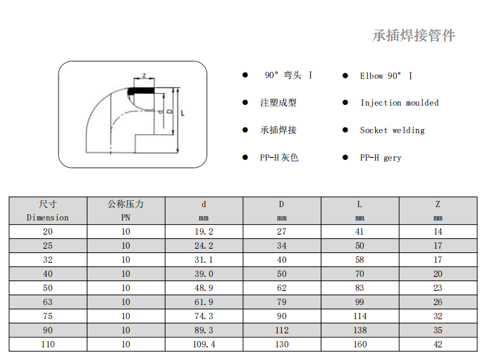 PP-H90°承插弯头